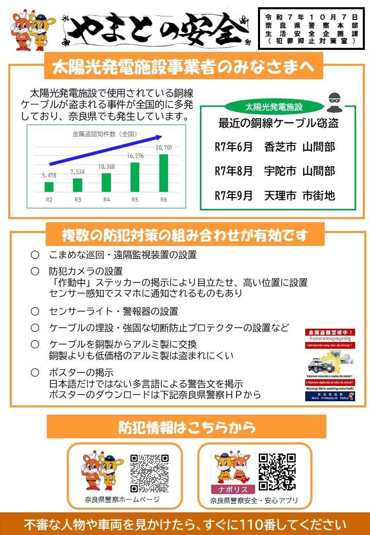 「太陽光発電施設金属窃盗対策」