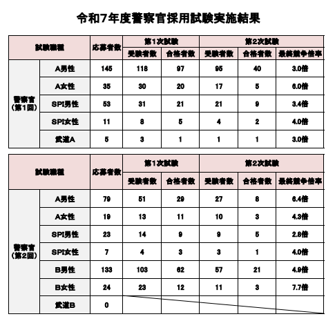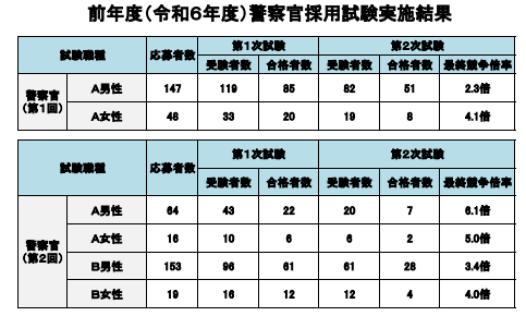 令和7年度奈良県警察官採用試験における実施結果をPDFファイルで掲載しています。