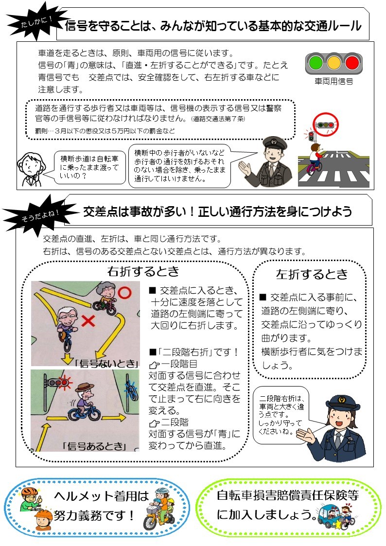 「交通事故にあわない、おこさない」ためにも、自転車の交通ルールとマナーをしっかり守りましょう。