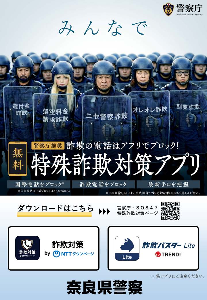 アプリのダウンロードはこちらから(別ウインドウで開く)(警察庁・SOS47特殊詐欺対策ページ)