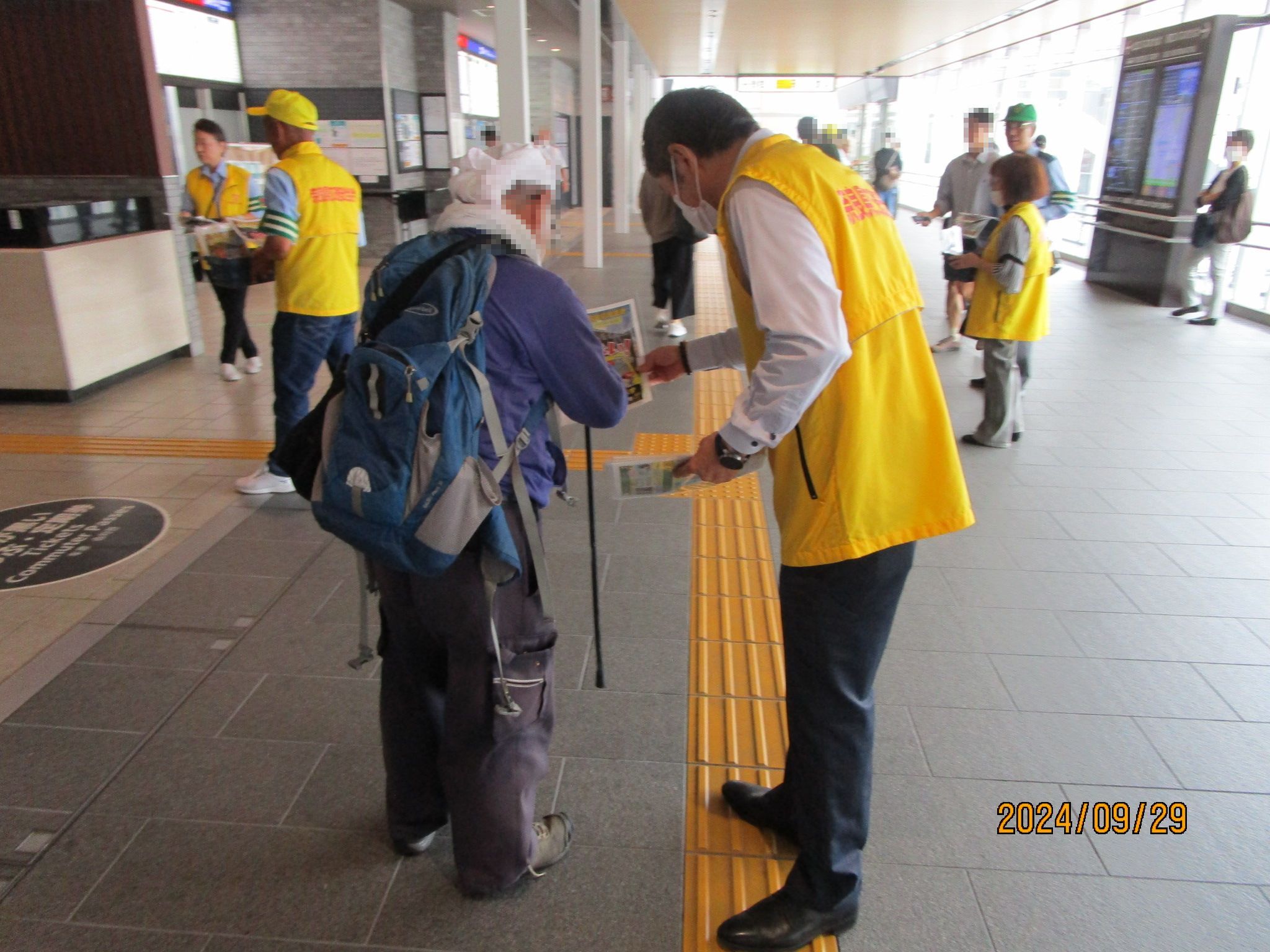 9月29日(日曜日)、奈良警察署と奈良西警察署は合同で、近鉄大和西大寺駅において、夜間の反射材用品の着用と交通安全を呼び掛ける啓発活動を行いました。