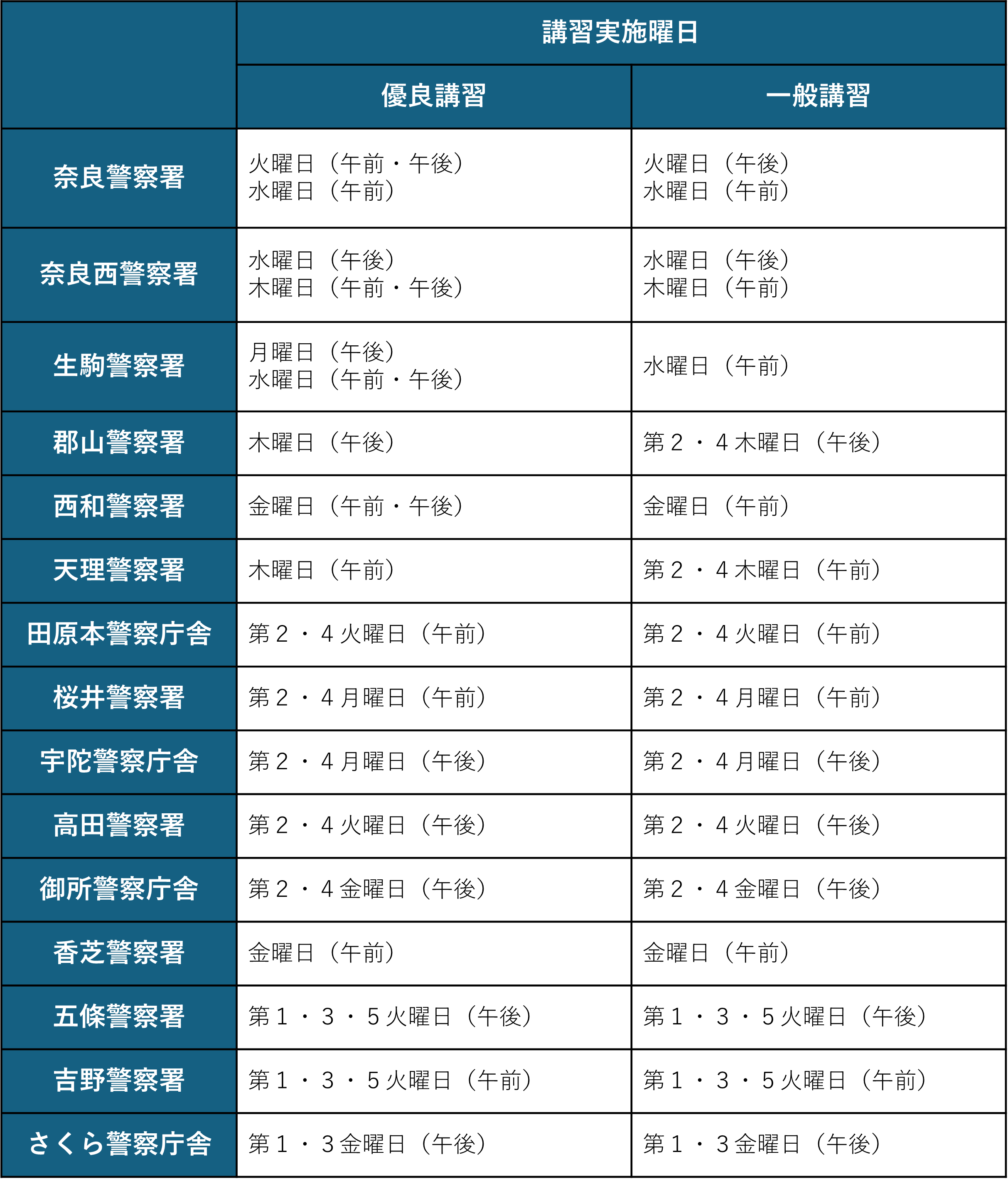 奈良県内の警察署(橿原署を除く)、分庁舎での手続