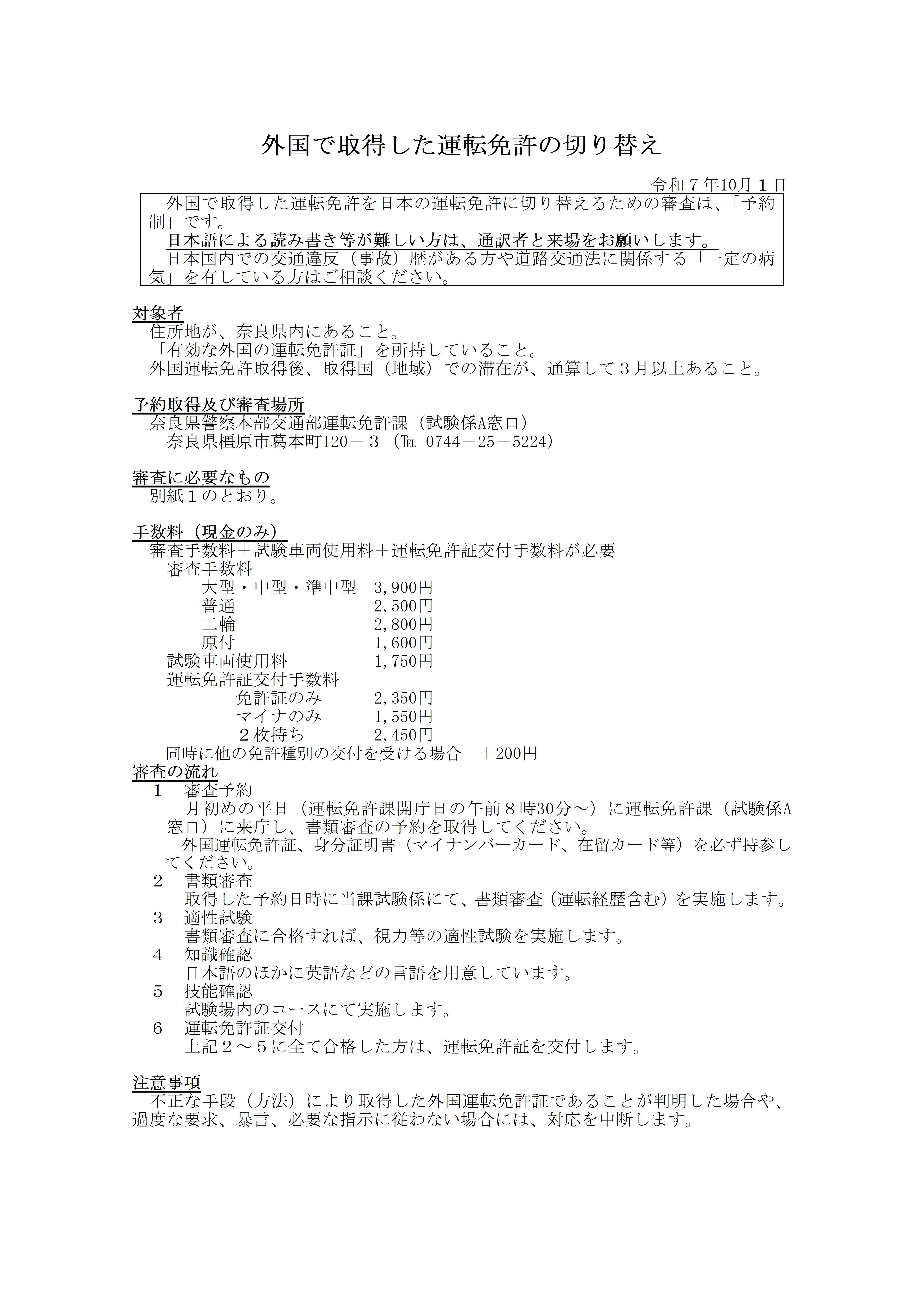 奈良県警察本部交通部運転免許課試験係(奈良県橿原市葛本町120番地の3)