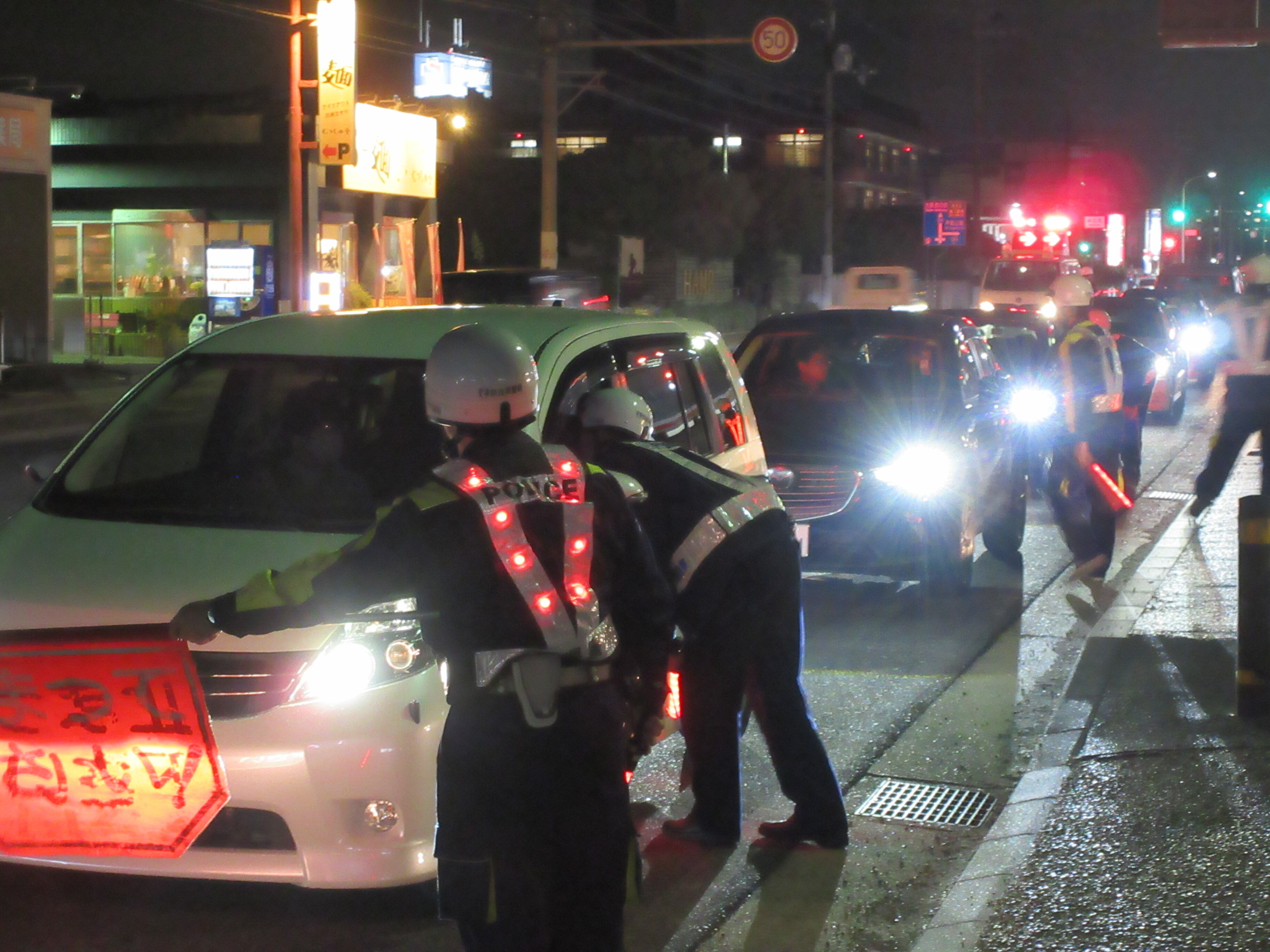 奈良県警察では、12月11日(木曜日)に、県内の主要幹線道路6か所において、総勢約80名による『大規模飲酒検問』を実施しました。検問では、通行車両約1,300台にアルコールチェック等を実施し、飲酒運転の危険性や悪質性を説明し飲酒運転根絶の意識醸成を図りました。年末年始は忘年会や新年会などで飲酒機会が増え、飲酒事故についても増加する傾向にあります。飲酒運転は悲惨な交通事故につながりますので、「飲酒運転は絶対にしない!させない!」の徹底をお願いします。なお11月末現在、県内では飲酒運転による交通事故が29件(前年比2件増加)発生し、飲酒運転検挙者数は440件(前年比154件増加)となります。※数字は概数